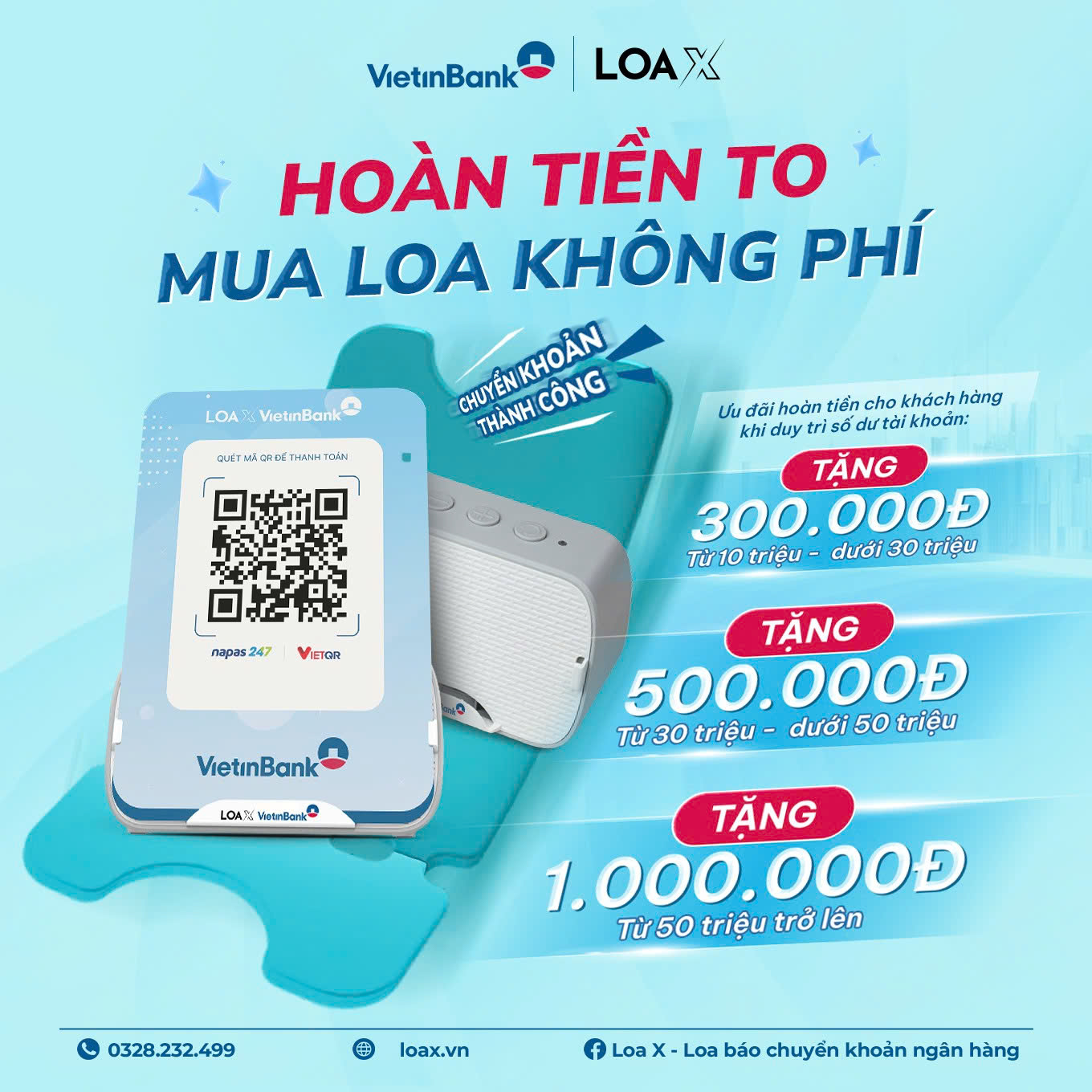 Từ ngày 01/08/2025 đến ngày 02/01/2026 Vietinbank hoàn tiền cực khủng dành cho KH liên kết phần mềm bán hàng/ Phần mềm bán hàng có liên kết Loa thông báo đạt Casa BQ tháng.